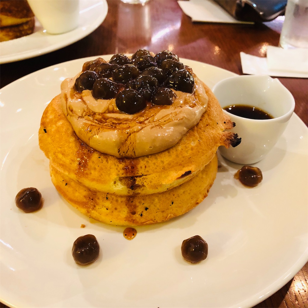 しかし、夕方相棒が「パンケーキ食べに行こうよ」というので、その誘いに乗ってしまい、心斎橋の洋服屋→近くにあるカバン屋を経て、Emaにあるカフェに辿り着く。