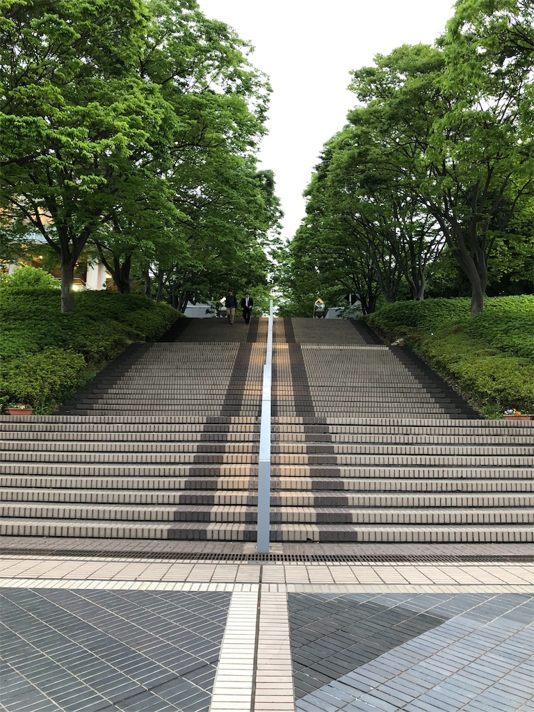 多摩丘陵を切り拓いて作ったのだろう、階段が延々と続く。