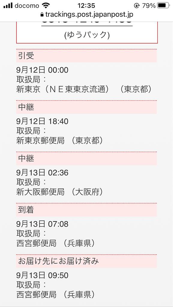 しかし、である。気にはなってしまうので、今日の午前中に、日本郵便の荷物追跡情報を見てみると。