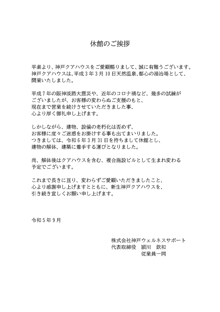 295その2 神戸クアハウス、休館するってよ